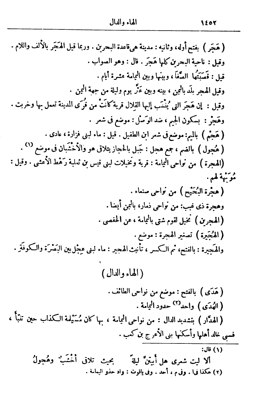 بفتح أوله، وثانيه: مدينة هى قاعدة البحرين. وربما قيل الهجر بالألف واللام.