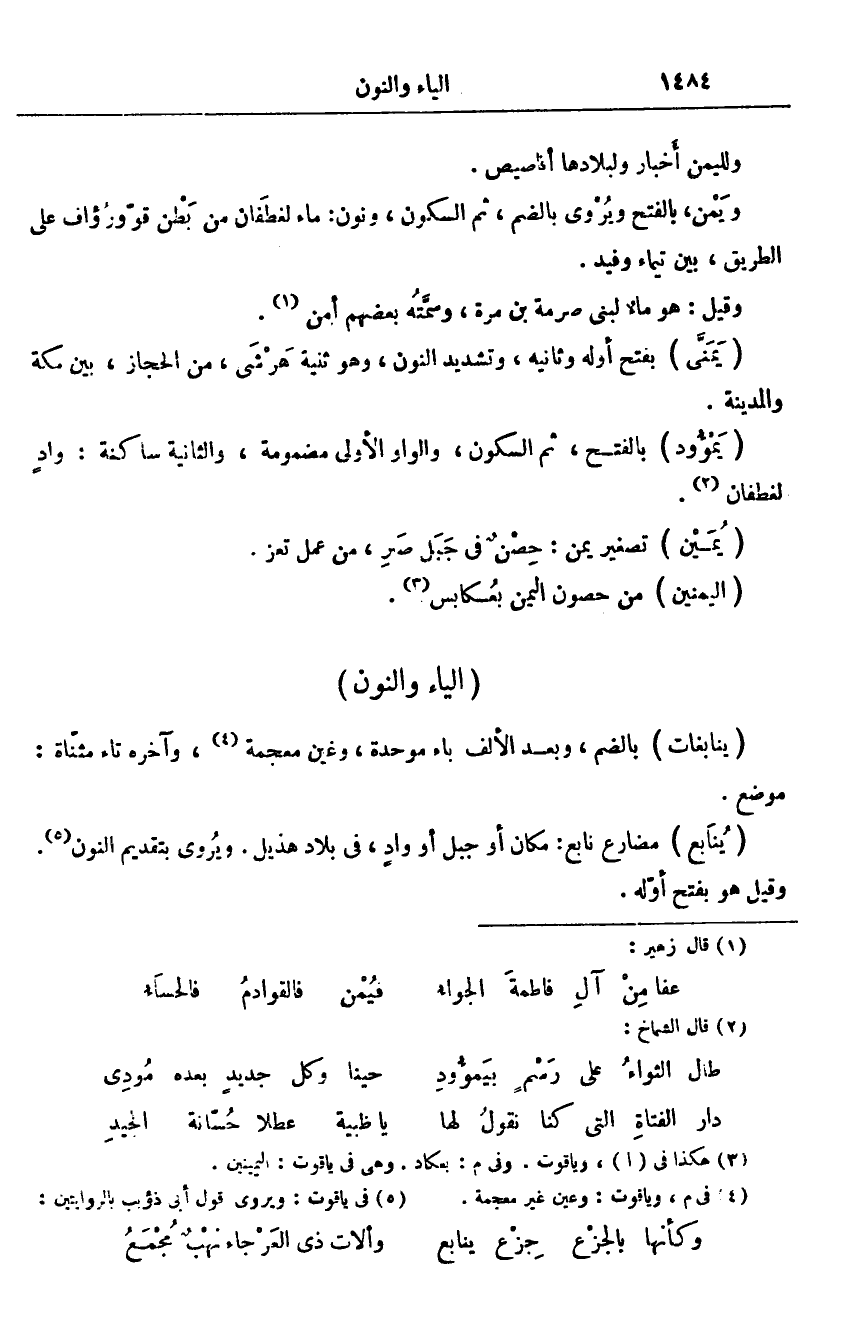 مضارع نابع: مكان أو جبل أو واد، فى بلاد هذيل. ويروى بتقديم النون «5» .