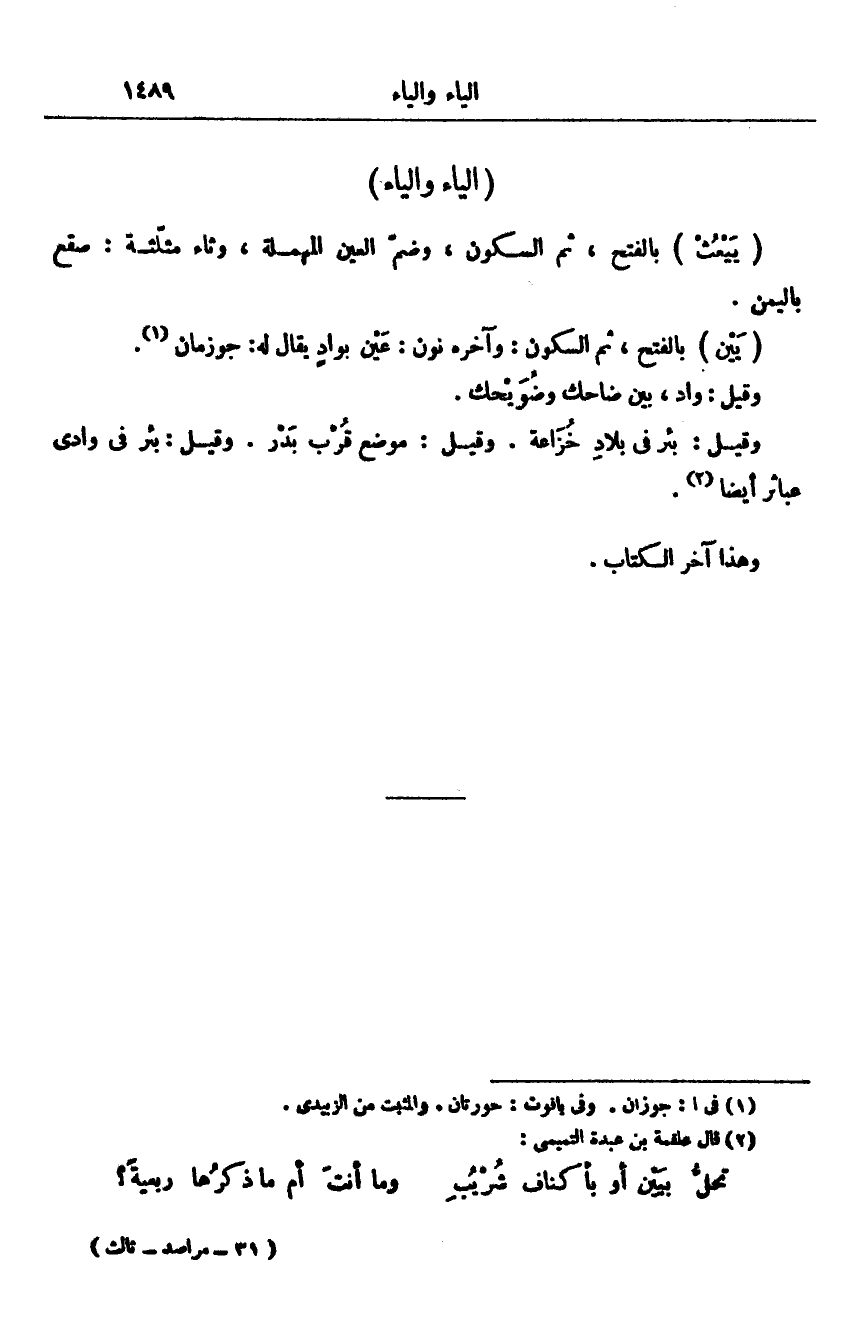 وقيل: بئر فى بلاد خزاعة. وقيل: موضع قرب بدر. وقيل: بئر فى وادى عباثر أيضا «2» .