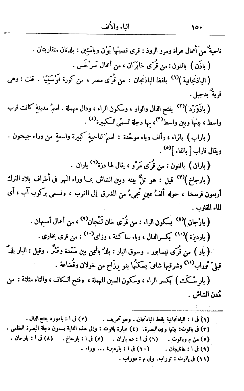 «1» بلفظ الباذنجان: من قرى مصر، من كورة قوسنيّا. قلت: وهى قرية بدجيل.