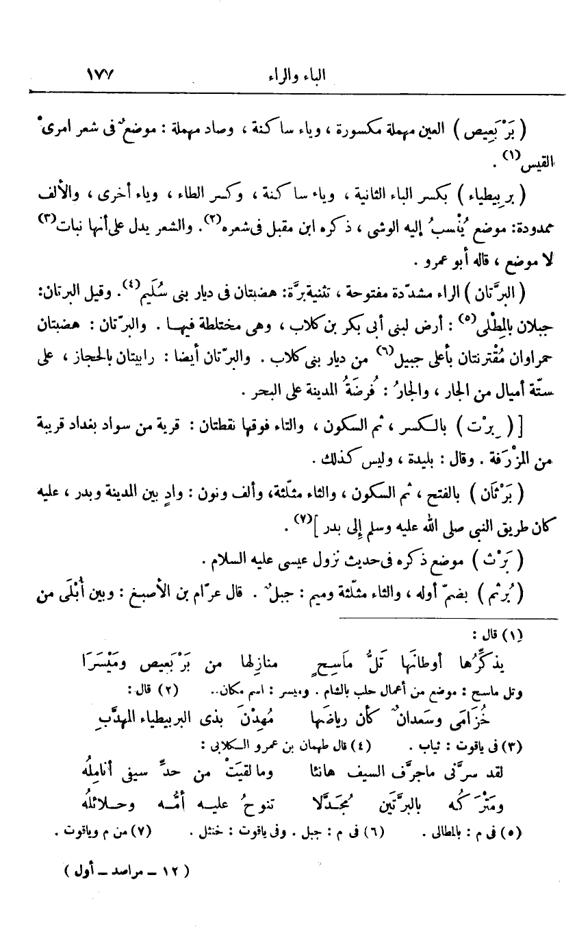 جبلان بالمطلى «5» : أرض لبنى أبى بكر بن كلاب، وهى مختلطة فيها. والبرّتان: هضبتان حمراوان مقترنتان بأعلى جبيل «6» من ديار بنى كلاب. والبرّتان أيضا: رابيتان بالحجاز، على ستّة أميال من الجار، والجار: فرضة المدينة على البحر.