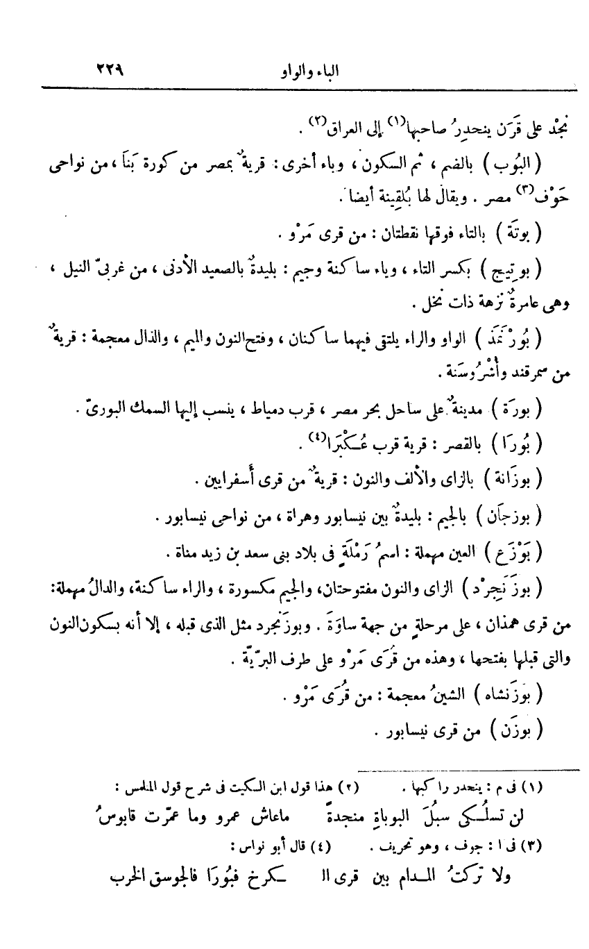 من قرى همذان، على مرحلة من جهة ساوة. وبوزنجرد مثل الذي قبله، إلا أنه بسكون النون والتى قبلها بفتحها، وهذه من قرى مرو على طرف البرّيّة.