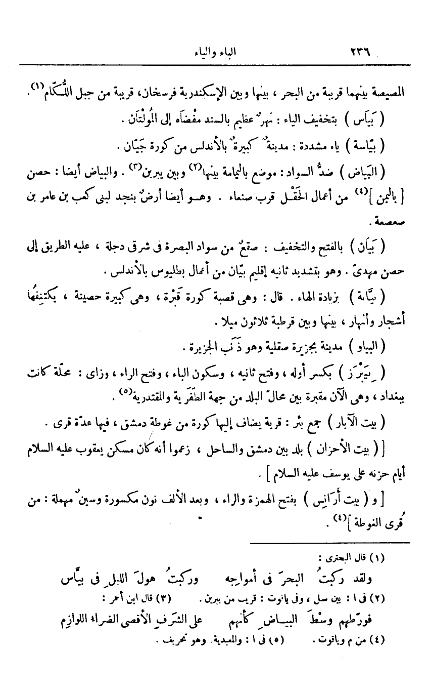 بالفتح والتخفيف: صقع من سواد البصرة فى شرقى دجلة، عليه الطريق إلى حصن مهدىّ. وهو بتشديد ثانيه إقليم بيّان من أعمال بطليوس بالأندلس.
