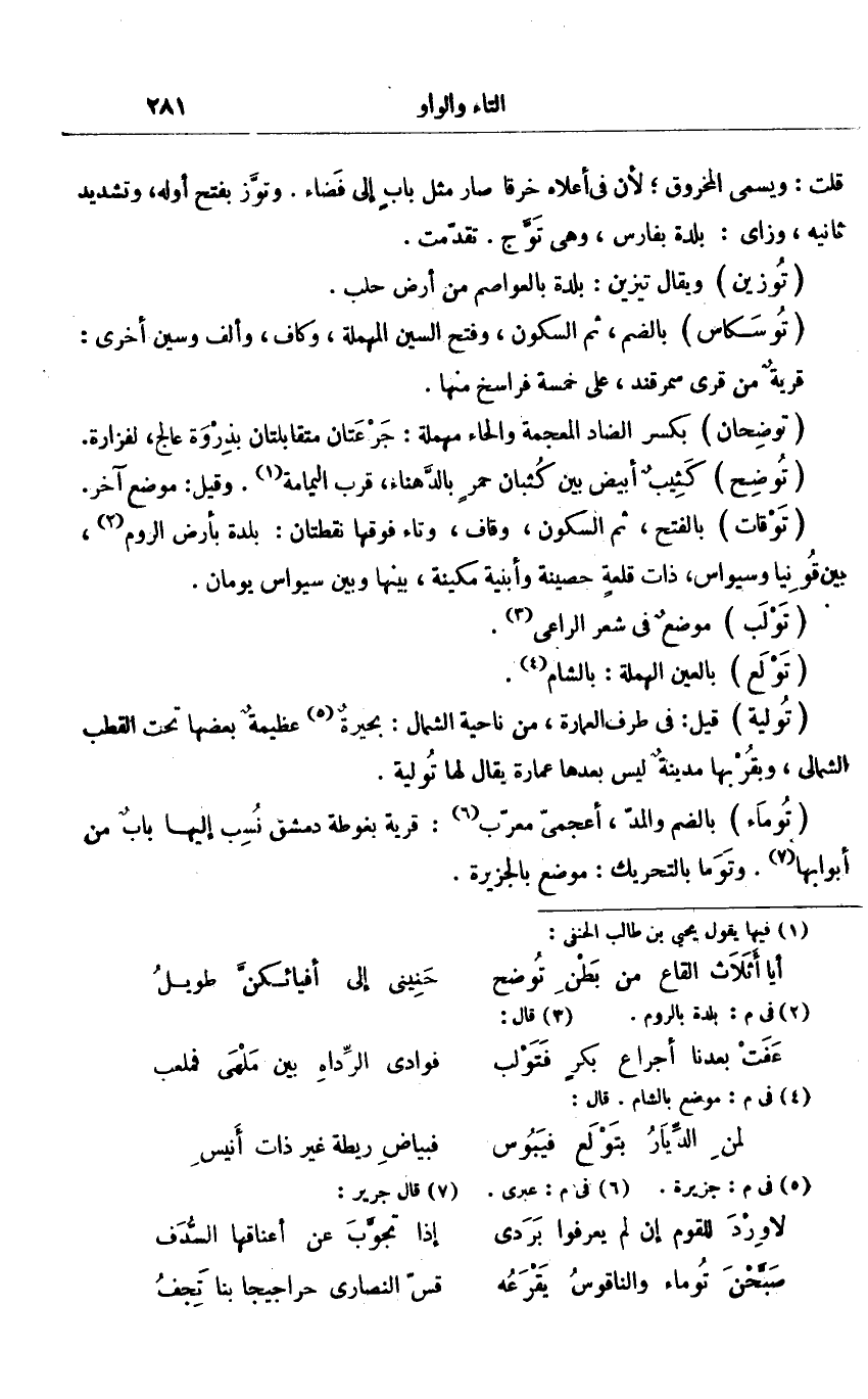 قلت: ويسمى المخروق؛ لأن فى أعلاه خرقا صار مثل باب إلى فضاء. وتوّز بفتح أوله، وتشديد ثانيه، وزاى: بلدة بفارس، وهى توّج. تقدّمت.