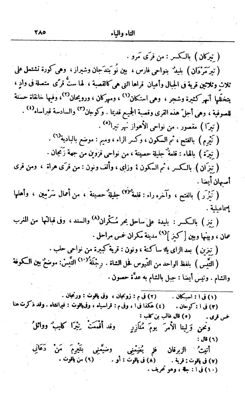 بلفظ الواحد من التّيوس فحل الشاة. رجلة «10» التّيس: موضع بين الكوفة والشام. وتيس أيضا: جبل بالشام به عدّة حصون.