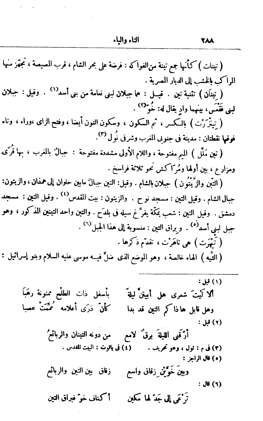 جبال الشام. وقيل التين: مسجد نوح. والزيتون: بيت المقدس «4» . وقيل التين: مسجد دمشق. وقيل التين: شعب بمكّة يفرّغ سيله فى بلدح. والتين واحد التينين المذكور، وهو جبل لبنى أسد «5» . وبراق التين: منسوبة إلى هذا الجبل «6» .