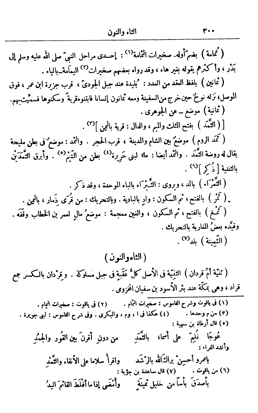 موضع بين الشام والمدينة، قرب الحجر. والثمد: موضع فى بطن مليحة يقال له روضة الثّمد. والثمد أيضا: ماء لبنى حريرة «4» بطن من التّيم «5» . وأبرق الثّمدين بالثنية [ذكر] «6» .