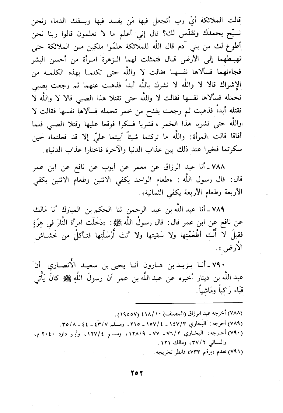 788 - أنا عَبْدُ الرَّزَّاقِ، عَنْ مَعْمَرٍ، عَنْ أَيُّوبَ، عَنْ نَافِعٍ، عَنِ ابْنِ عُمَرَ قَالَ: قَالَ رَسُولُ اللَّهِ: «§طَعَامُ الْوَاحِدِ يَكْفِي الِاثْنَيْنِ وَطَعَامُ الِاثْنَيْنِ يَكْفِي الْأَرْبَعَةَ، وَطَعَامُ الْأَرْبَعَةِ يَكْفِي الثَّمَانِيَةَ»