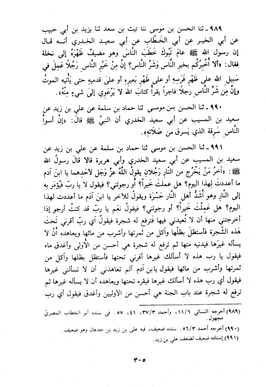 990 - ثَنَا الْحَسَنُ بْنُ مُوسَى، ثَنَا حَمَّادُ بْنُ سَلَمَةَ، عَنْ عَلِيِّ بْنِ زَيْدٍ، عَنْ سَعِيدِ بْنِ الْمُسَيِّبِ، عَنْ أَبِي سَعِيدٍ الْخُدْرِيِّ، أَنَّ النَّبِيَّ صَلَّى اللهُ عَلَيْهِ وَسَلَّمَ، قَالَ: «إِنَّ §أَسْوَأَ النَّاسِ سَرِقَةً الَّذِي يَسْرِقُ مِنْ صَلَاتِهِ»