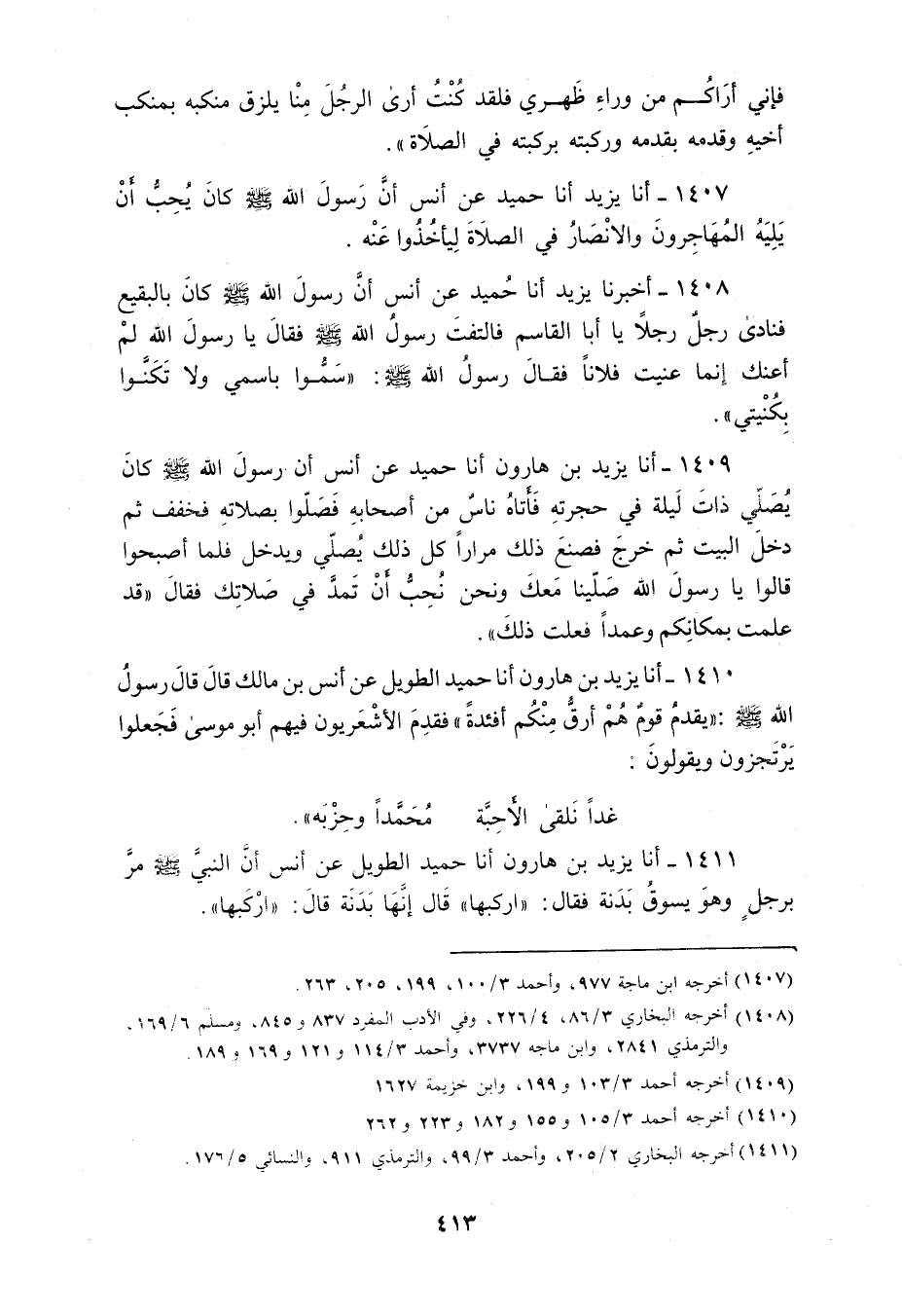 1407 - أنا يَزِيدُ، أنا حُمَيْدٌ، عَنْ أَنَسٍ: «أَنَّ رَسُولَ اللَّهِ صَلَّى اللهُ عَلَيْهِ وَسَلَّمَ كَانَ §يُحِبُّ أَنْ يَلِيَهُ الْمُهَاجِرُونَ وَالْأَنْصَارُ فِي الصَّلاةِ لِيَأْخُذُوا عَنْهُ»