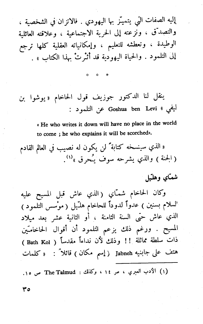 1 الأدب العبري، ص14، وكذلك THE TALMUD ص15.