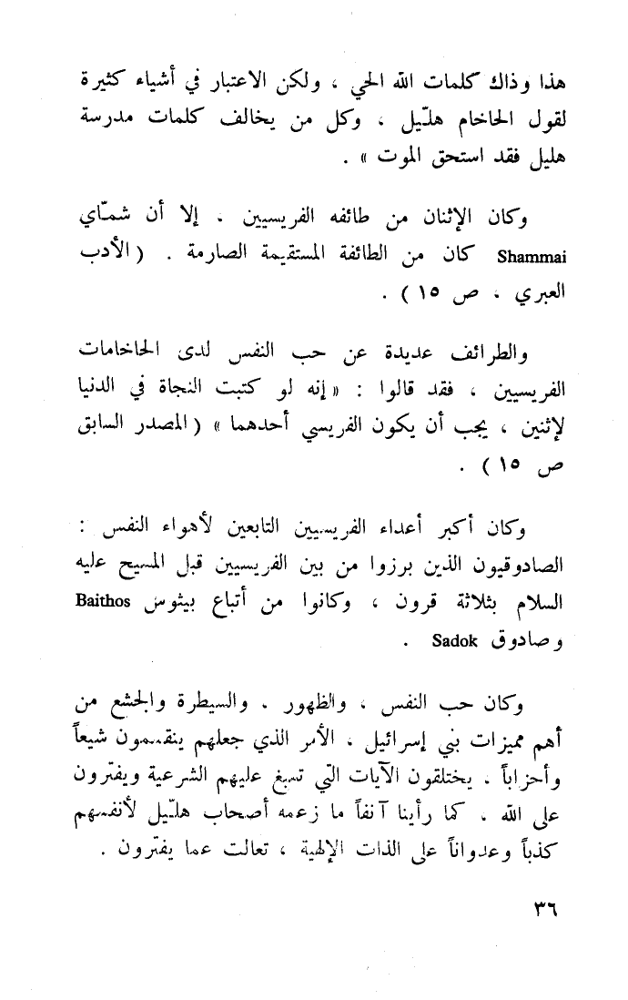 وكان أكبر أعداء الفريسيين التابعين لأهواء النفس الصادوقيون الذين برزوا من بين الفريسيين قبل المسيح -عليه السلام- بثلاثة قرون، وكانوا من أتباع بيئوس Baithos وصادوق Sadok،