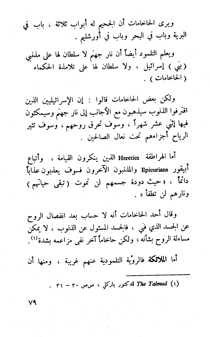 ويعلم التلمود أيضًا أن نار جهم لا سلطان لها على مذنبي "بني" إسرائيل، ولا سلطان لها على تلامذة الحكماء "الحاخامات".