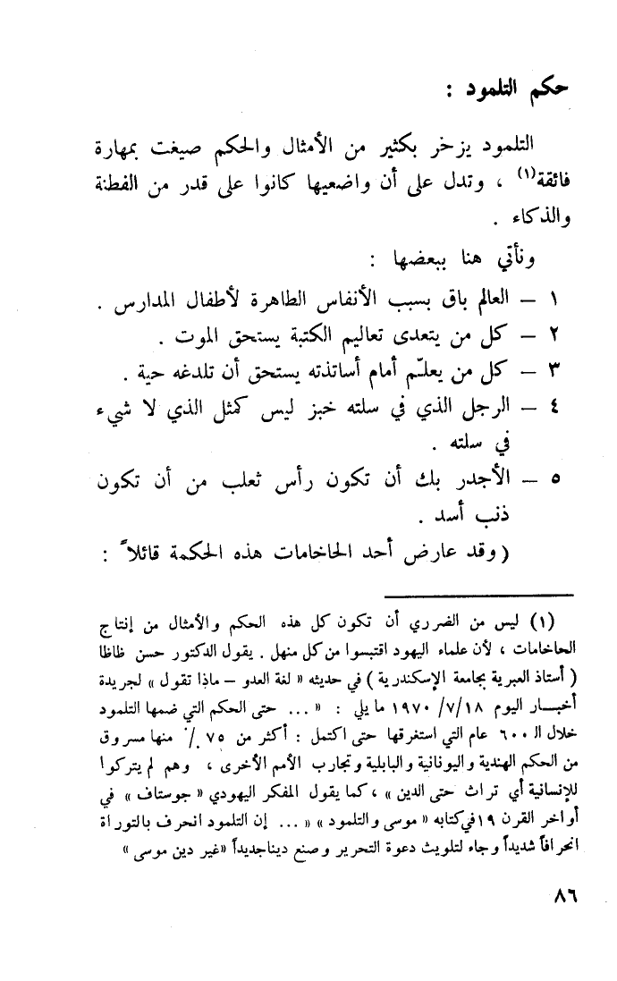 التلمود يزخر بكثير من الأمثال والحكم صيغت بمهارة فائقة1، وتدل على أن واضعيها كانوا على قدر كبير من الفطنة والذكاء،