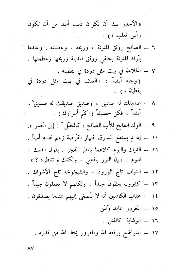 6- الصالح رونق المدينة وريحه، وعظمته وعندما يترك الميتة يختفي رونق المدينة وريحها وعظمتها.