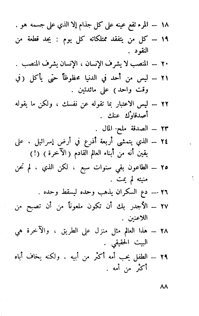 18- المرء تقع عينه على كل جذام إلّا الذي على جسمه هو.
