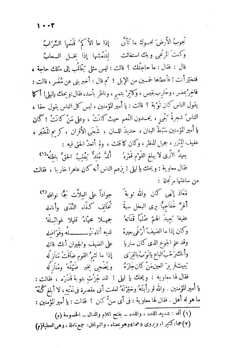 فقال معاوية: ويحك يا ليلى! يزعم الناس أنه كان عاهرا خاربا، فقالت من ساعتها مرتجلة: