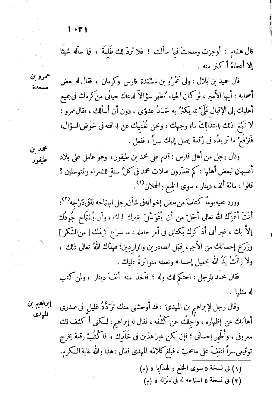 وقال رجل من أهل فارس: قدم على محمد بن طيفور، وهو عامل على بلاد أصبهان لبعض أهلها: كم تقدّرون صلات محمد فى كلّ سنة للشعراء والمتوسلين؟