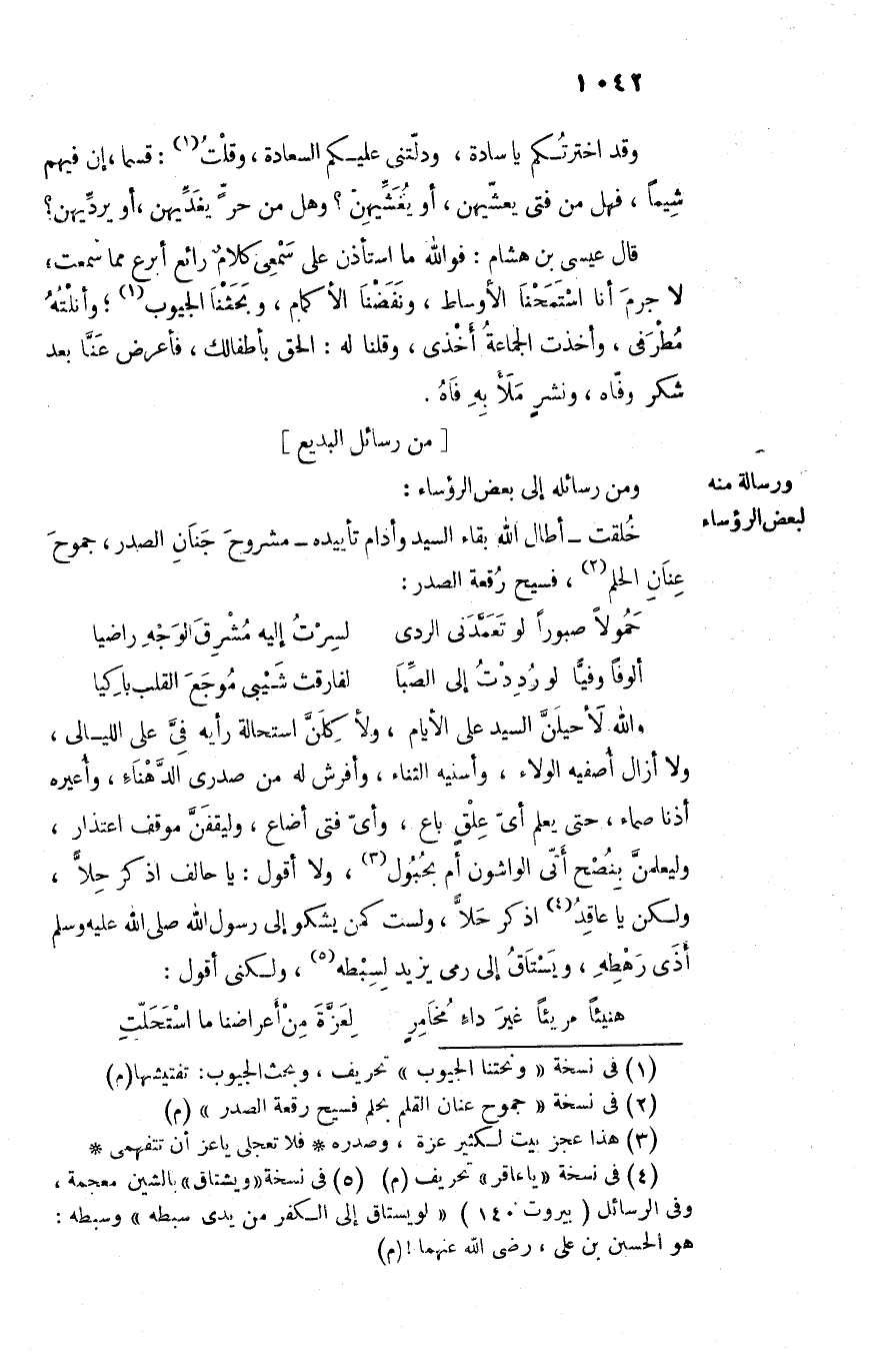 ومن رسائله إلى بعض الرؤساء: