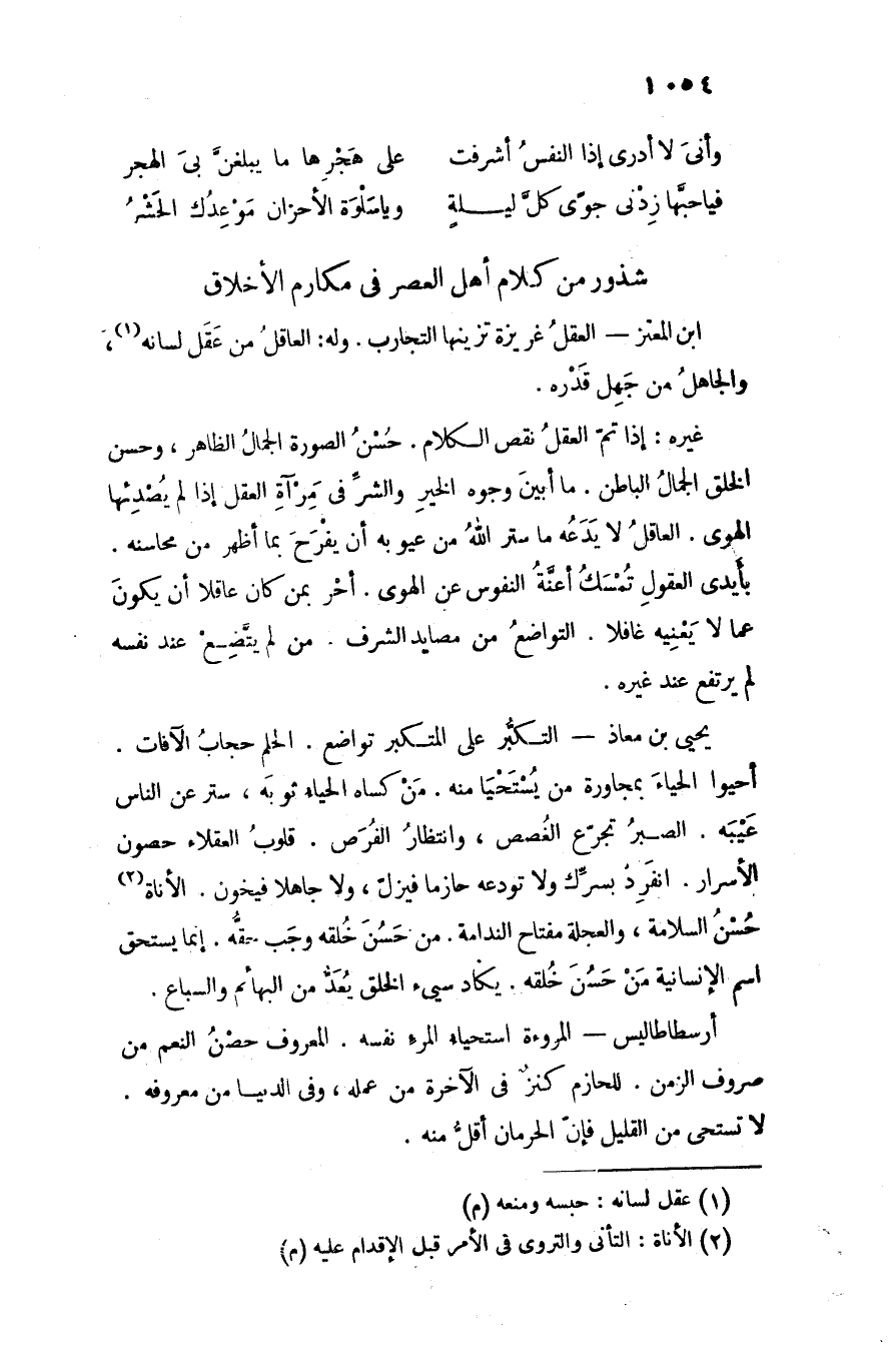 شذور من كلام أهل العصر فى مكارم الأخلاق