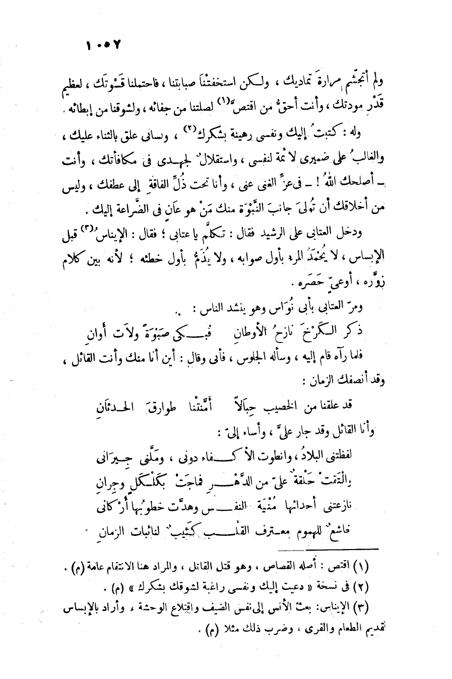 ولم أتجشّم مرارة تماديك، ولكن استخفتنا صبابتنا، فاحتملنا قسوتك، لعظيم قدر مودتك، وأنت أحقّ من اقتصّ «1» لصلتنا من جفائه، ولشوقنا من إبطائه.