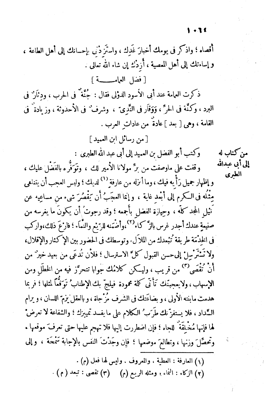 وكتب أبو الفضل بن العميد إلى أبى عبد الله الطبرى: