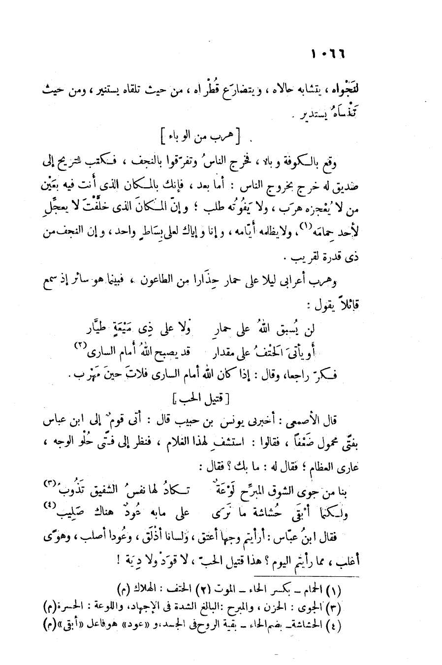 وهرب أعرابى ليلا على حمار حذارا من الطاعون، فبينما هو سائر إذ سمع قائلا يقول: