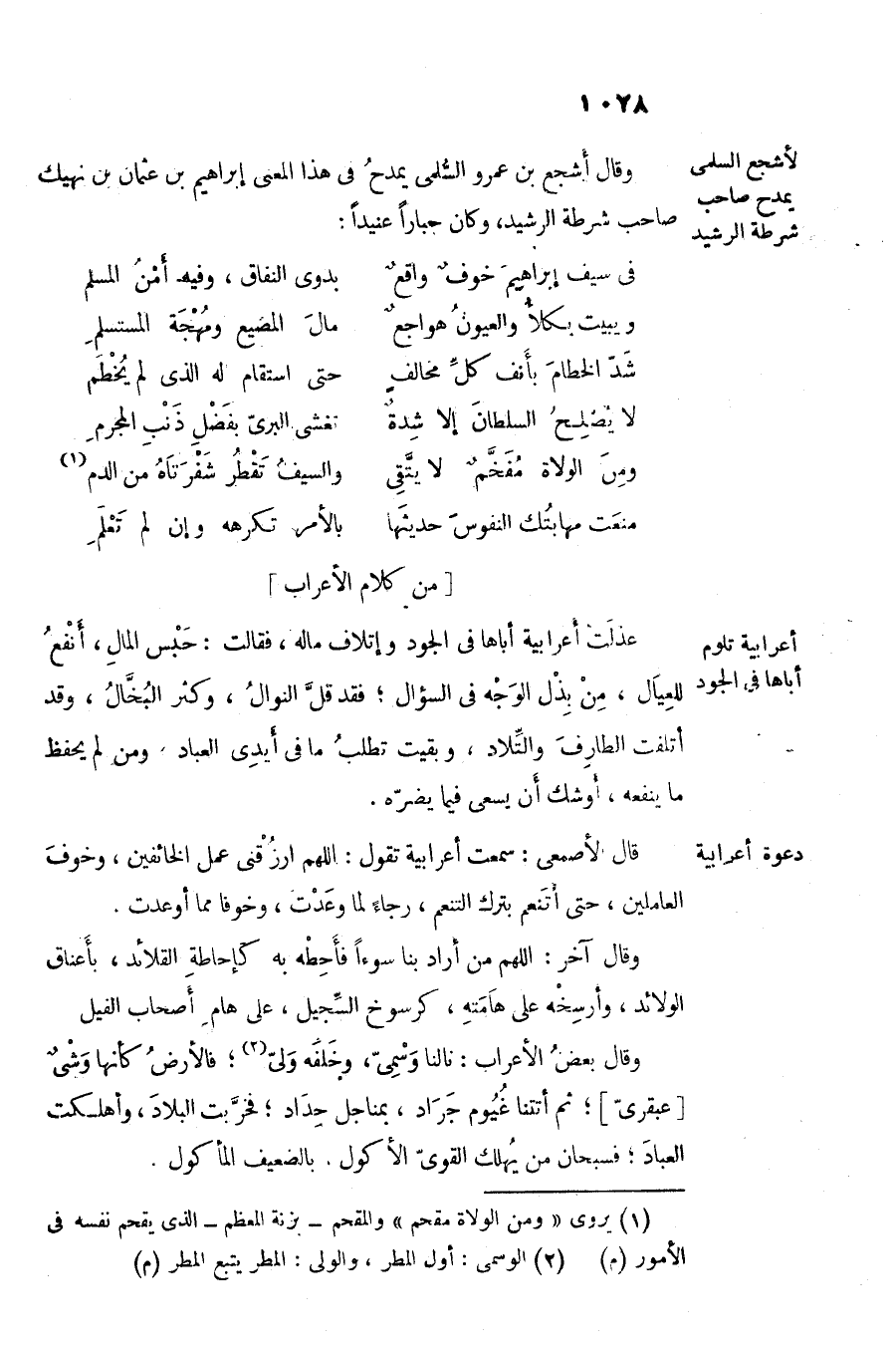 وقال أشجع بن عمرو السّلمى يمدح فى هذا المعنى إبراهيم بن عثمان بن نهيك صاحب شرطة الرشيد، وكان جبارا عنيدا: