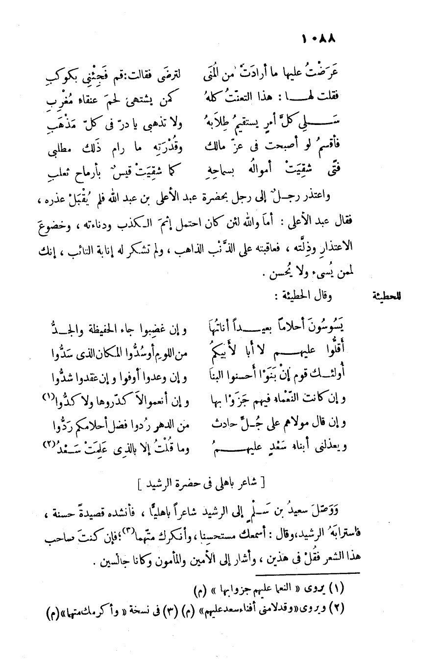 واعتذر رجل إلى رجل بحضرة عبد الأعلى بن عبد الله فلم يقبل عذره، فقال عبد الأعلى: أما والله لئن كان احتمل إثم الكذب ودنامته، وخضوع الاعتذار وذلّته، فعاقبته على الذّنب الذاهب، ولم تشكر له إنابة التائب، إنك لمن يسىء ولا يحسن.