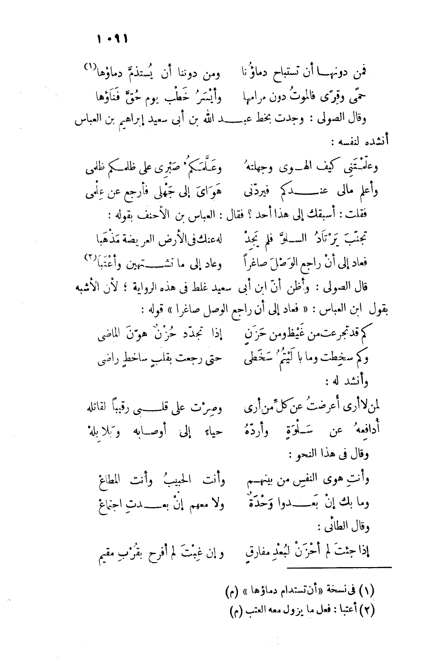قال الصولى: وأظن أنّ ابن أبى سعيد غلط فى هذه الرواية؛ لأن الأشبه بقول ابن العباس: «فعاد إلى أن راجع الوصل صاغرا» قوله: