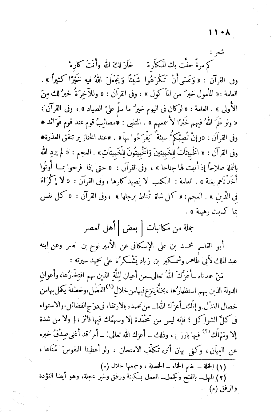 أبو القاسم محمد بن على الإسكافى عن الأمير نوح بن نصر وعن ابنه عبد الملك لأبى طاهر وشمكير بن زياد يشكره على حميد سيرته: