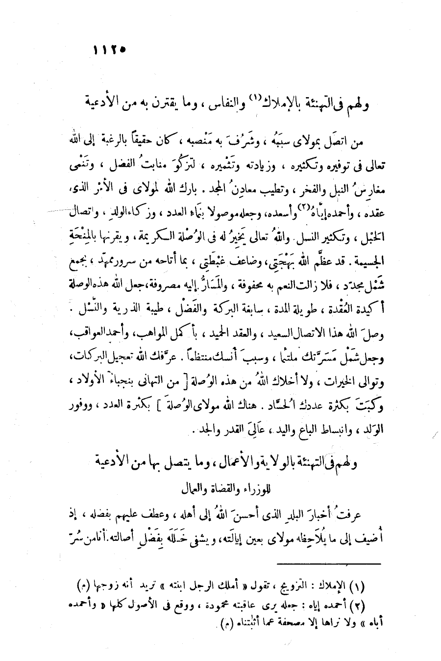 ولهم فى التهنئة بالإملاك «1» والنفاس، وما يقترن به من الأدعية