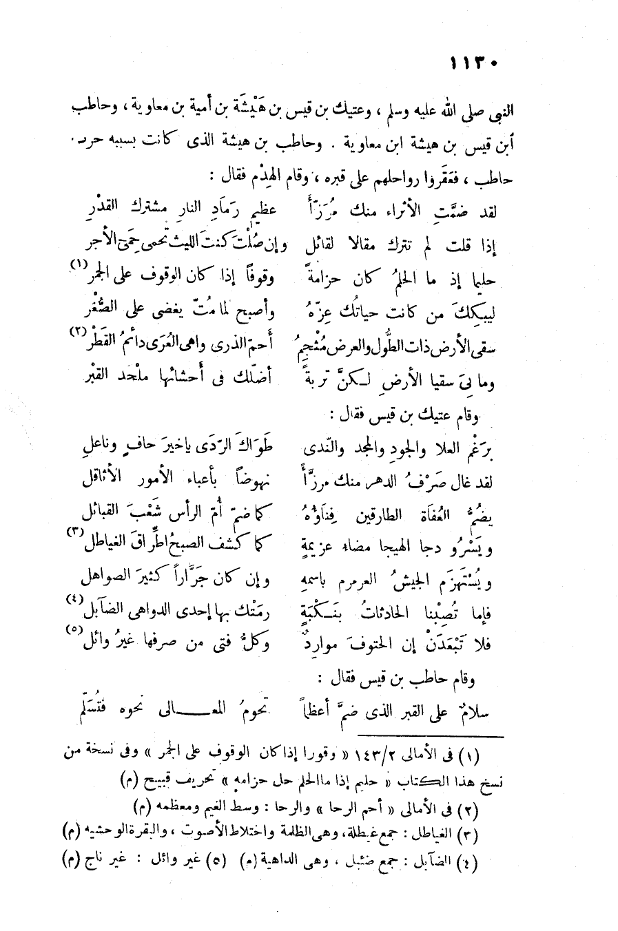 النبى صلى الله عليه وسلم، وعتيك بن قيس بن هيشة بن أمية بن معاوية، وحاطب ابن قيس بن هيشة ابن معاوية. وحاطب بن هيشة الذى كانت بسببه حرب حاطب، فعقروا رواحلهم على قبره، وقام الهدم فقال: