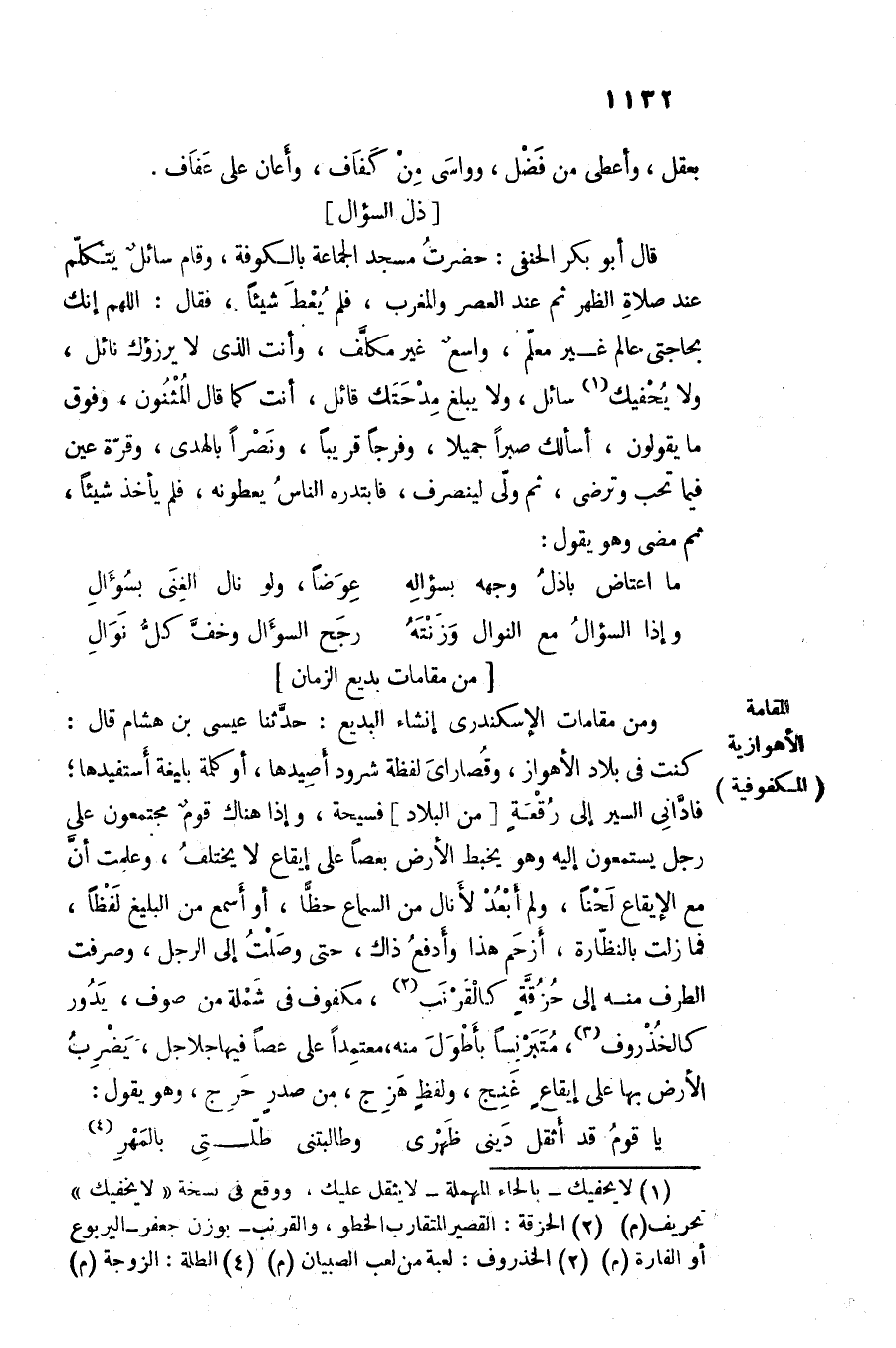 ومن مقامات الإسكندرى إنشاء البديع: حدّثنا عيسى بن هشام قال: