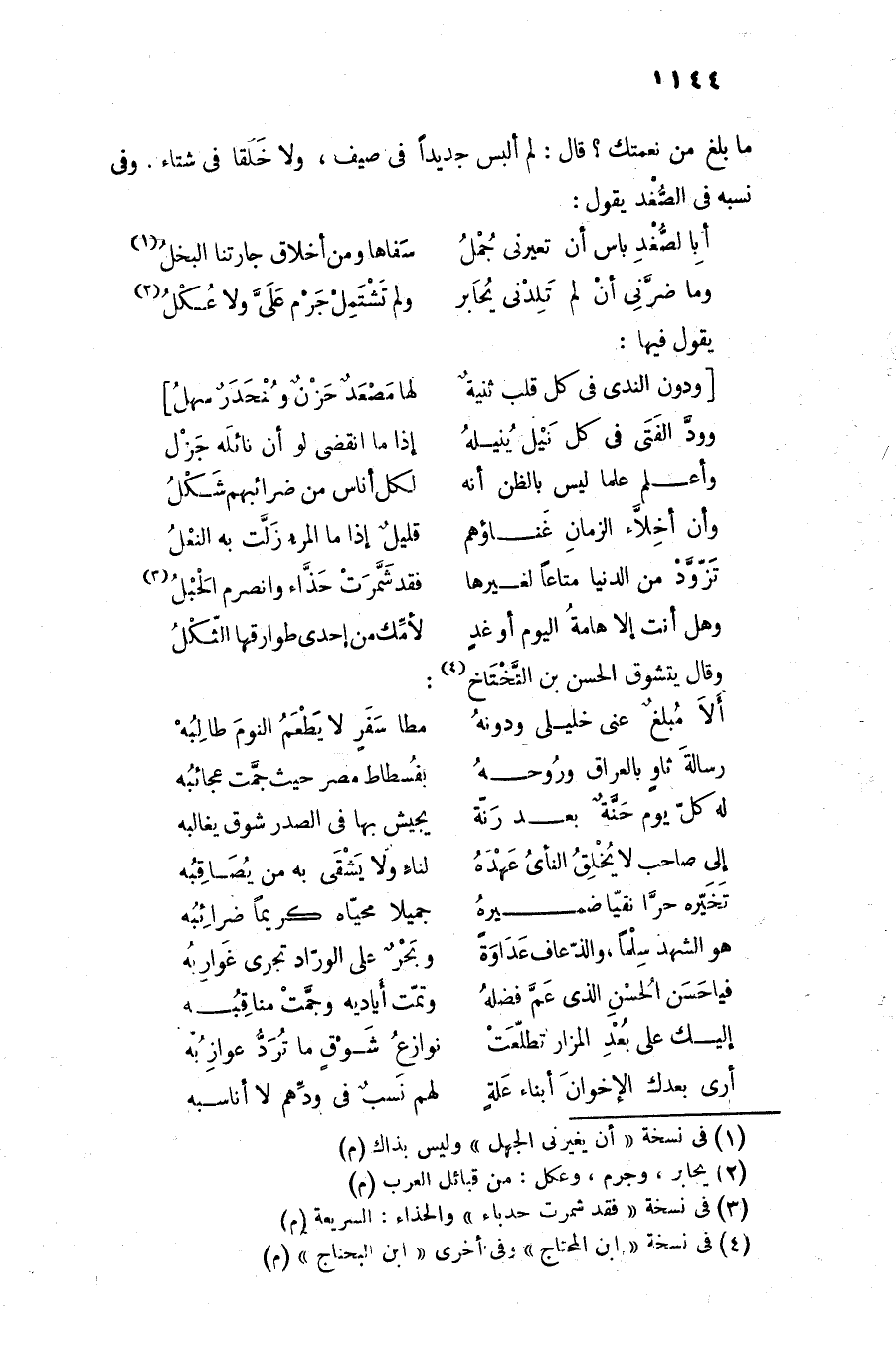 ما بلغ من نعمتك؟ قال: لم ألبس جديدا فى صيف، ولا خلقا فى شتاء. وفى نسبه فى الصّغد يقول: