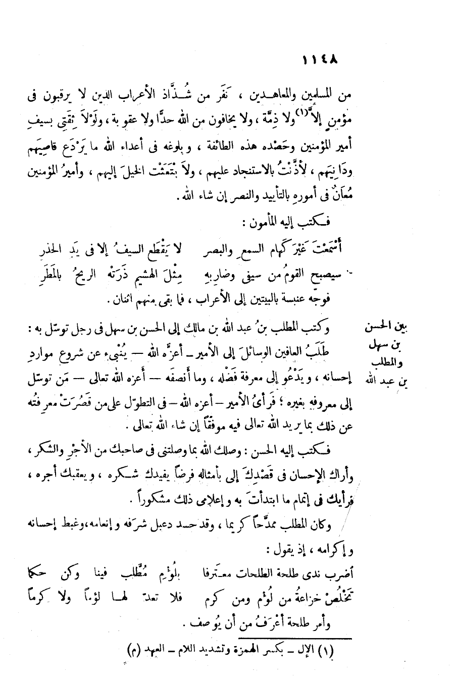 فكتب إليه الحسن: وصلك الله بما وصلتنى فى صاحبك من الأجر والشكر، وأراك الإحسان فى قصدك إلى بأمثاله فرضا يفيدك شكره، ويعقبك أجره، فرأيك فى إتمام ما ابتدأت به وإعلامى ذلك مشكورا.