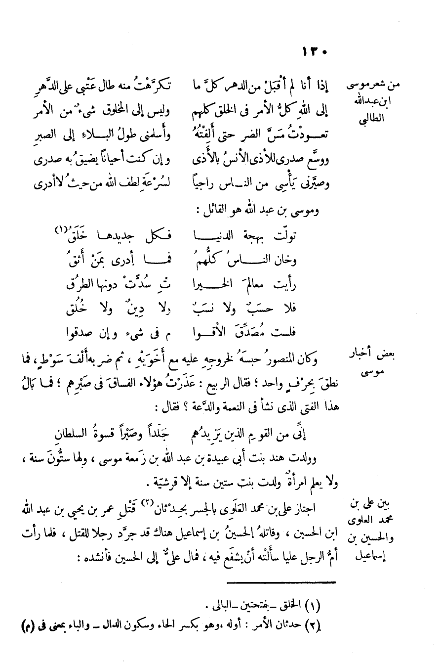 وموسى بن عبد الله هو القائل: