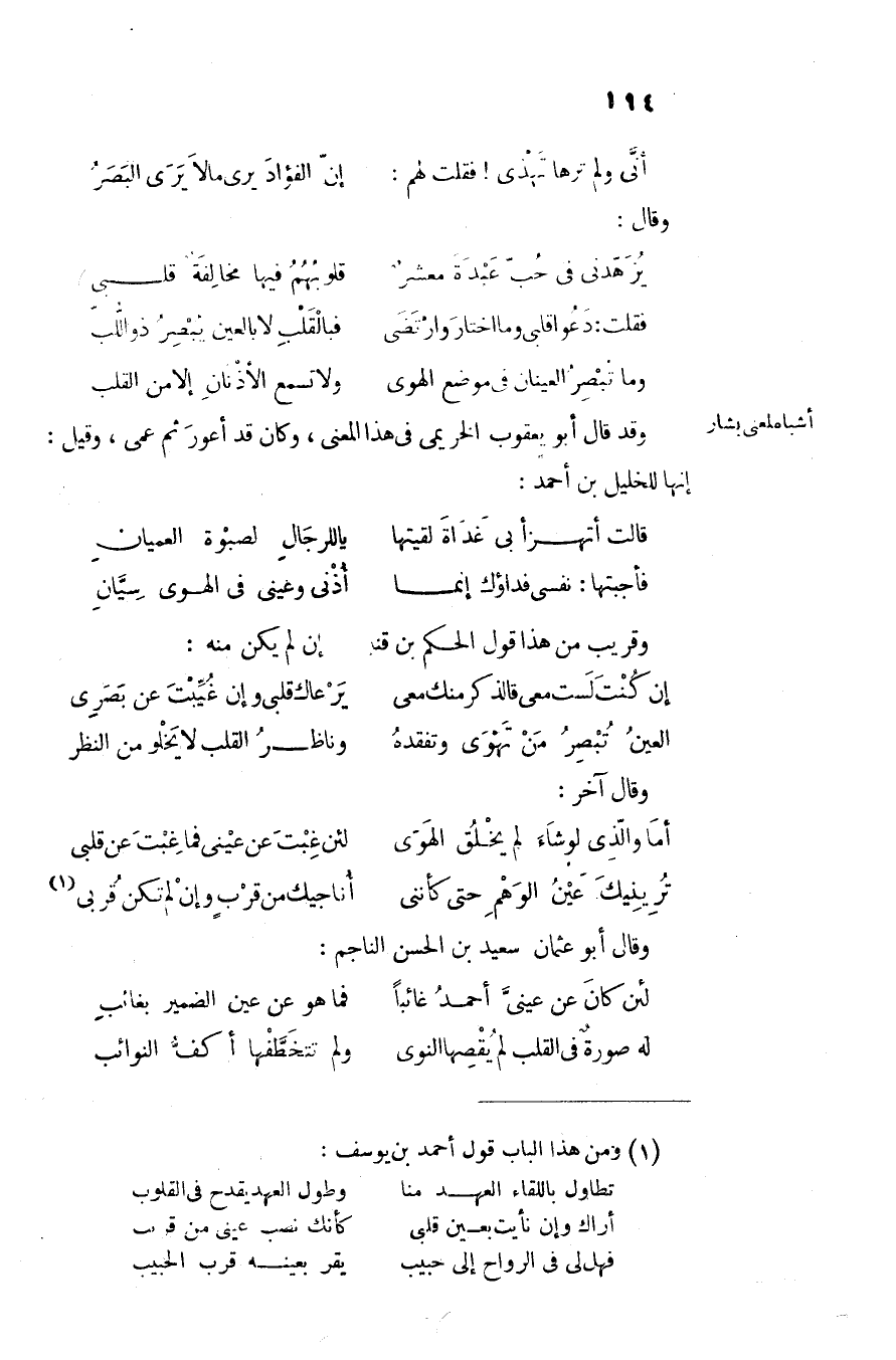 أنّى ولم ترها تهذى! فقلت لهم: ... إنّ الفؤاد يرى مالا يرى البصر