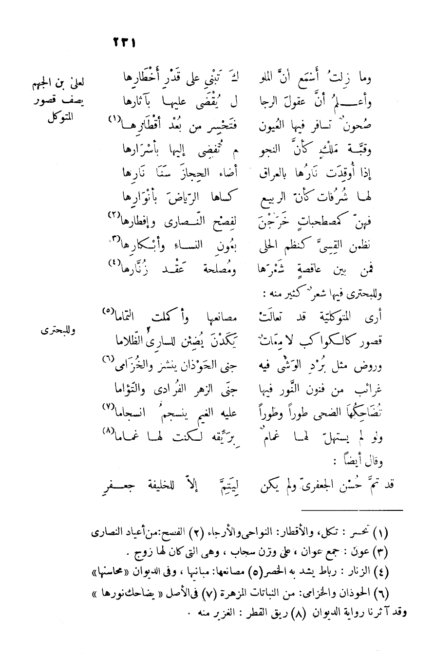 وللبحترى فيها شعر كثير منه: