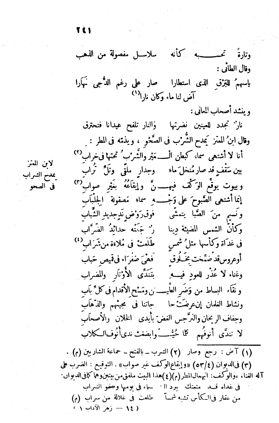 فى غداة وكأسها مثل شمس ... طلعت في ملاءة من شراب «4»