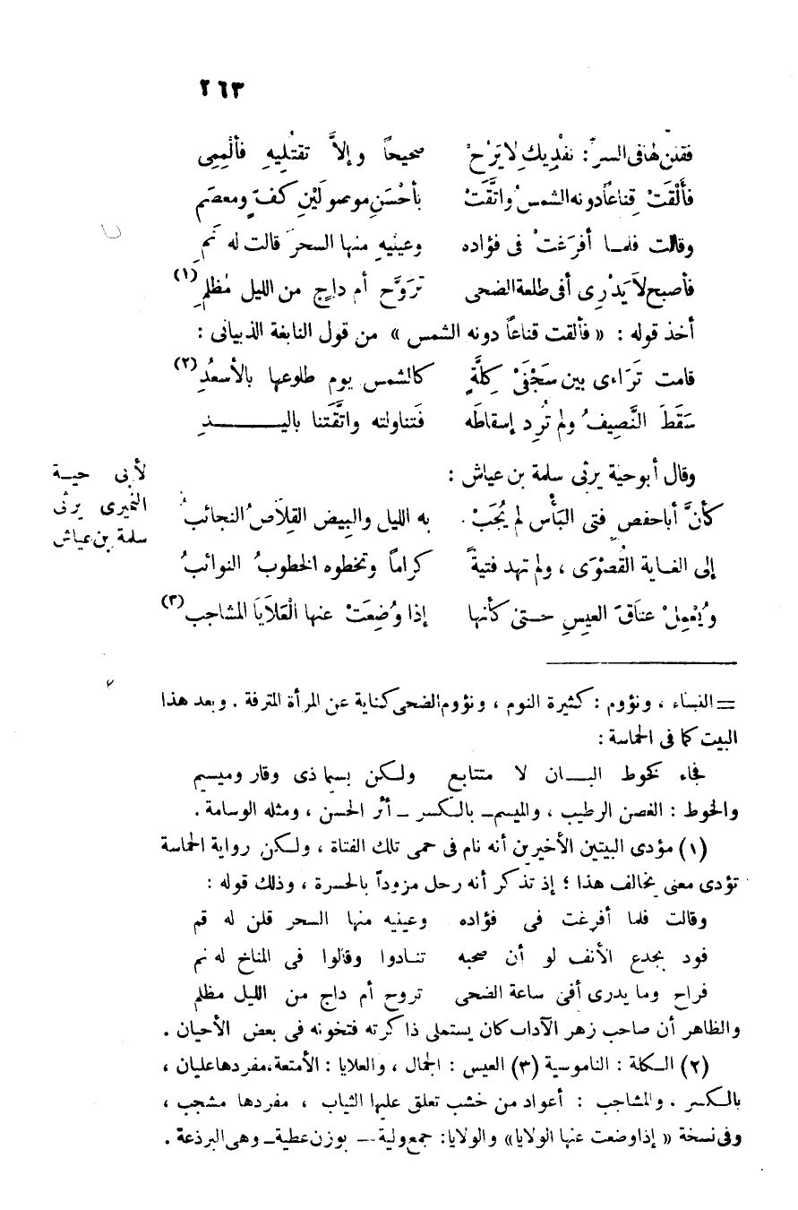 أخذ قوله: «فألقت قناعا دونه الشمس» من قول النابغة الذبيانى: