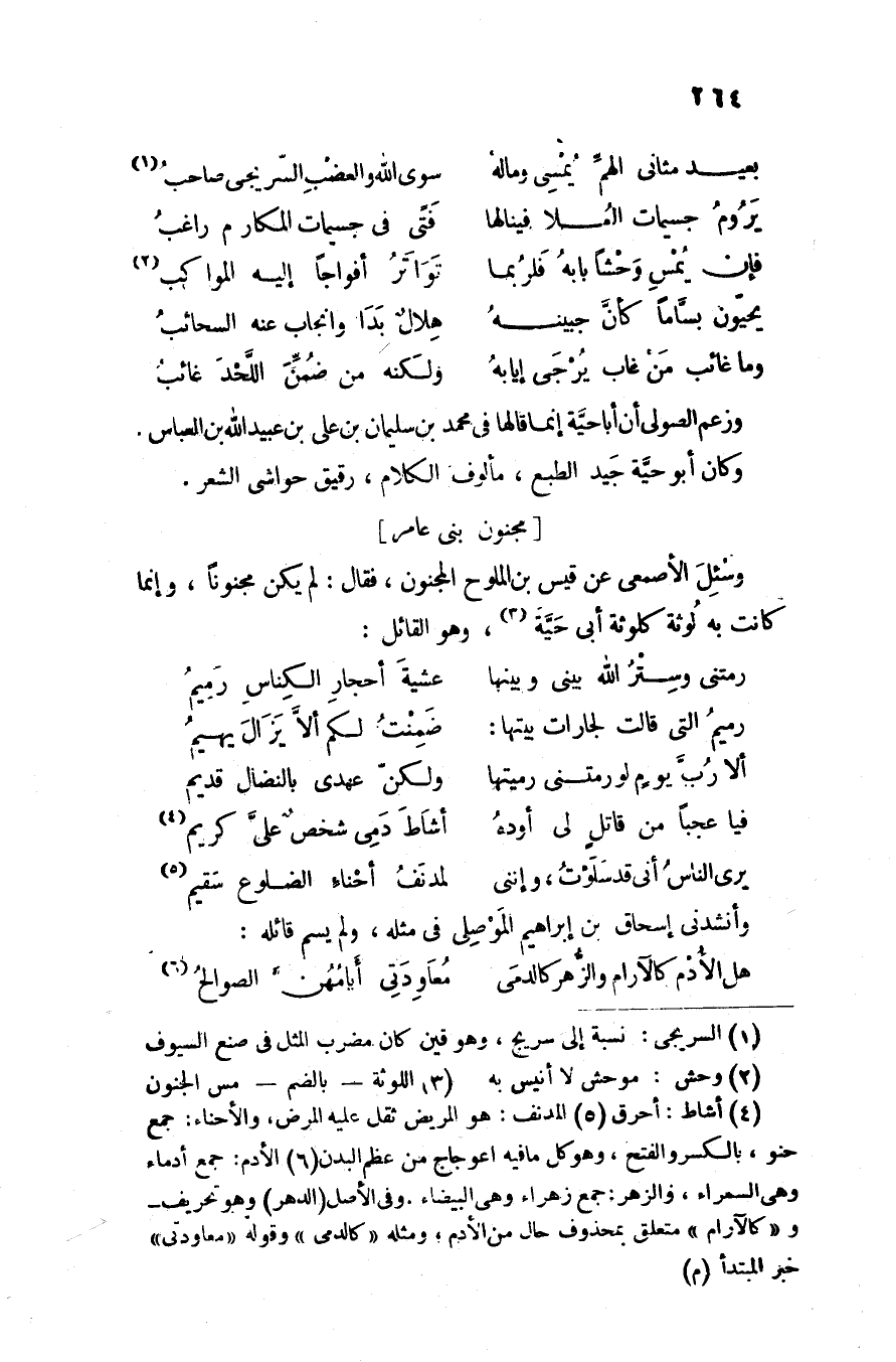 وسئل الأصمعى عن قيس بن الملوح المجنون، فقال: لم يكن مجنونا، وإنما كانت به لوثة كلوثة أبى حيّة «3» ، وهو القائل: