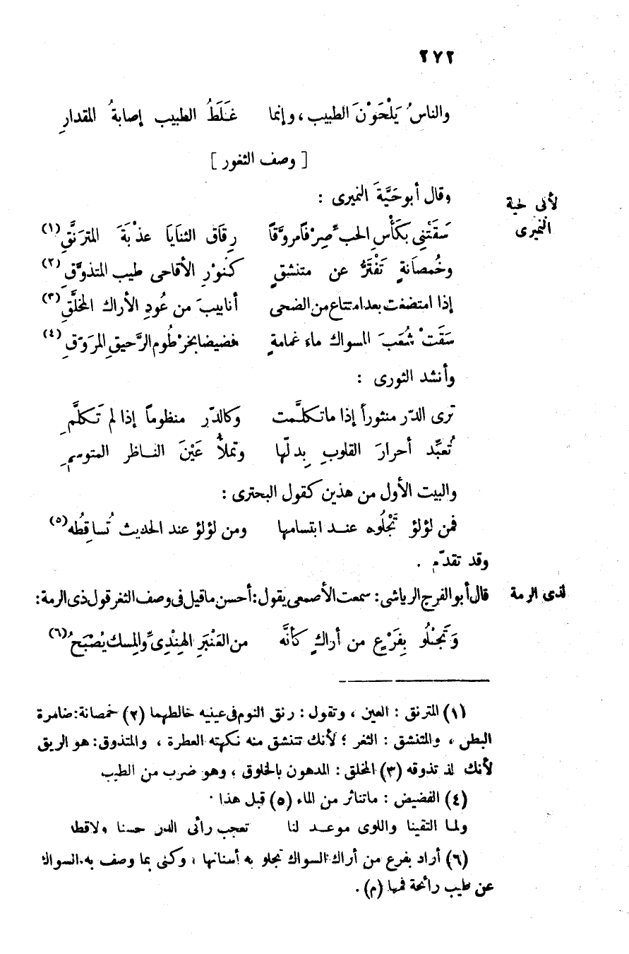 قال أبو الفرج الرياشى: سمعت الأصمعى يقول: أحسن ما قيل في وصف الثغر قول ذى الرمة: