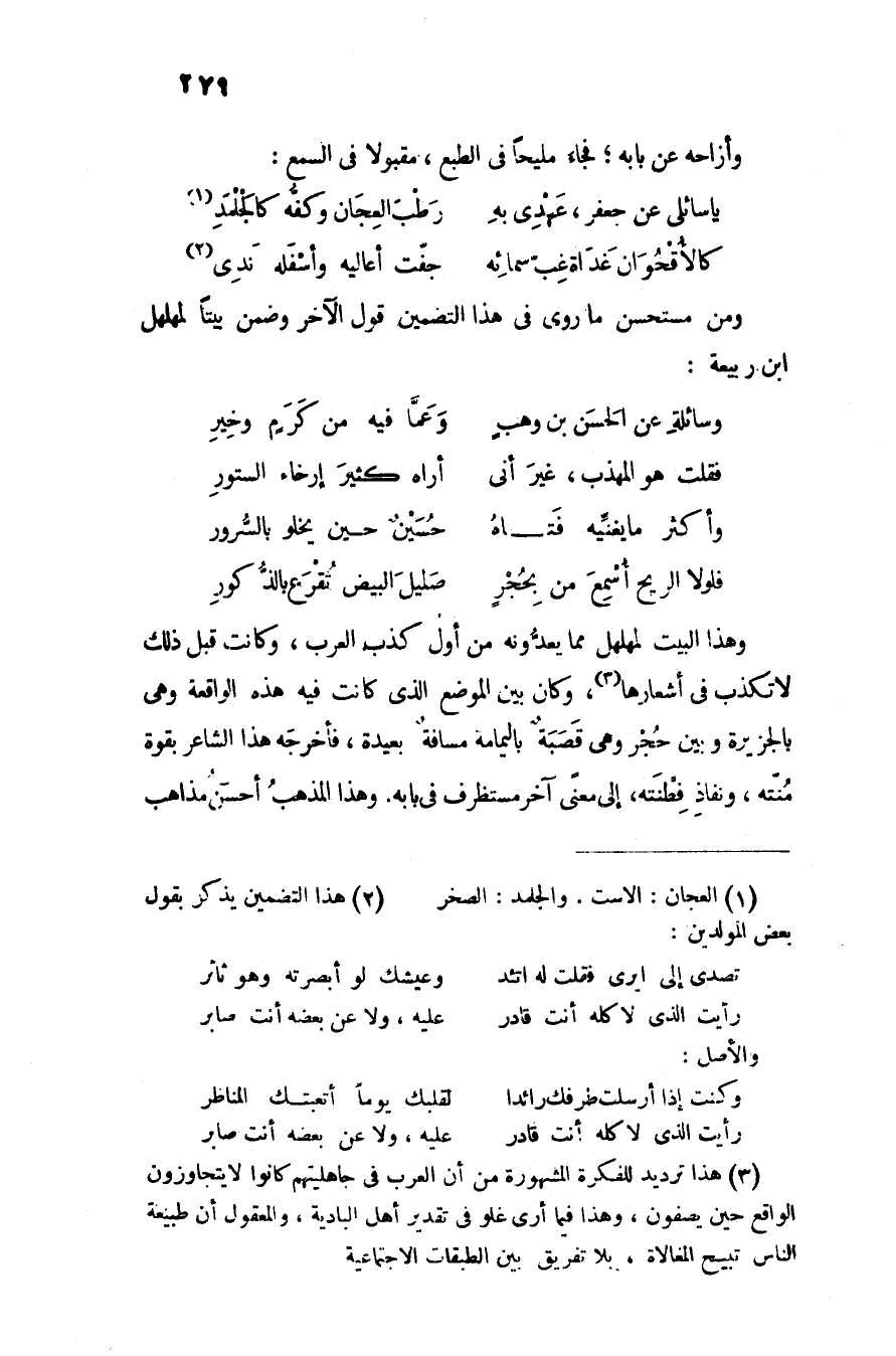 ومن مستحسن ما روى في هذا التضمين قول الآخر وضمن بيتا لمهلهل ابن ربيعة: