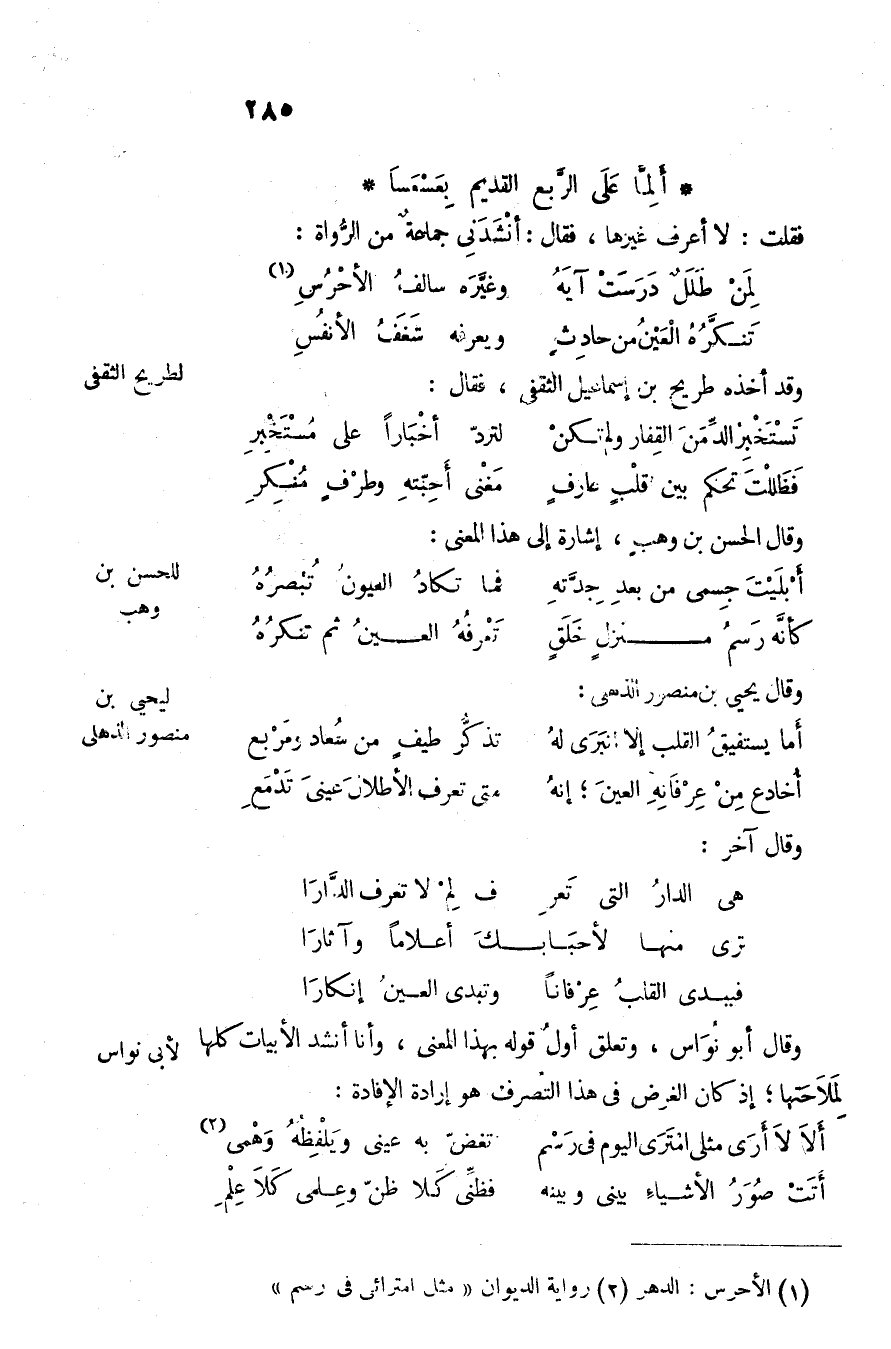 كأنّه رسم منزل خلق ... تعرفه العين ثم تنكره