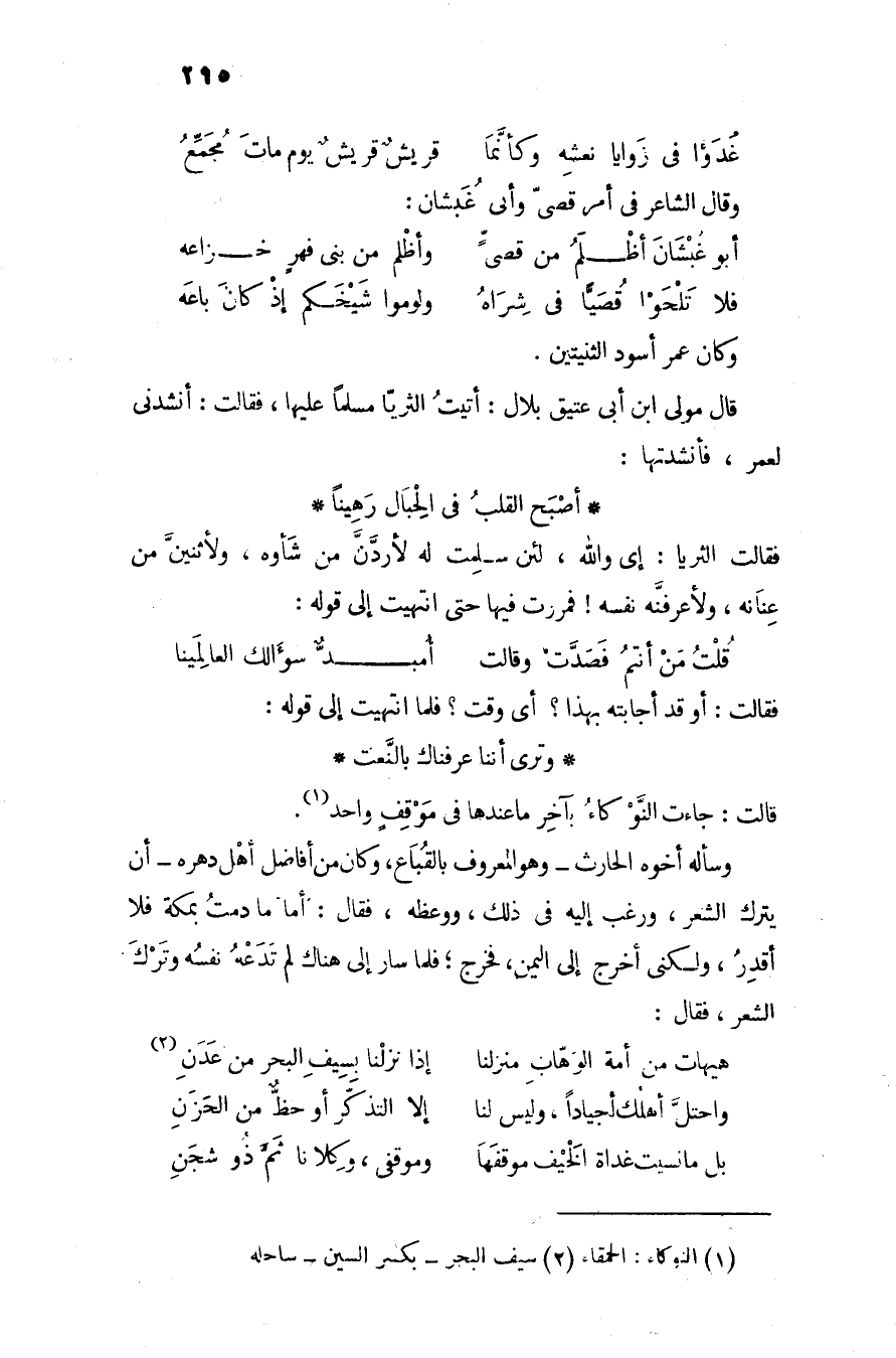 فقالت الثريا: إى والله، لئن سلمت له لأردّنّ من شأوه، ولأثنينّ من عنانه، ولأعرفنّه نفسه! فمررت فيها حتى انتهيت إلى قوله: