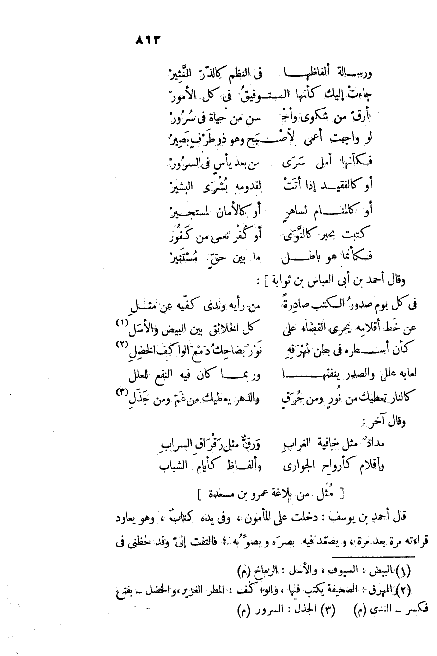 وقال أحمد بن أبى العباس بن ثوابة] :