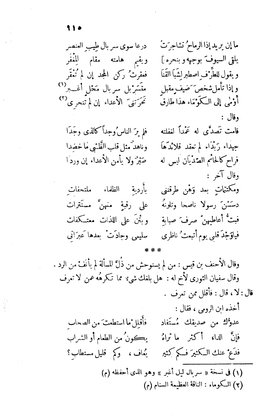 أومى إلى الكوماء هذا طارق ... نحرتنى الأعداء إن لم تنحرى «2»