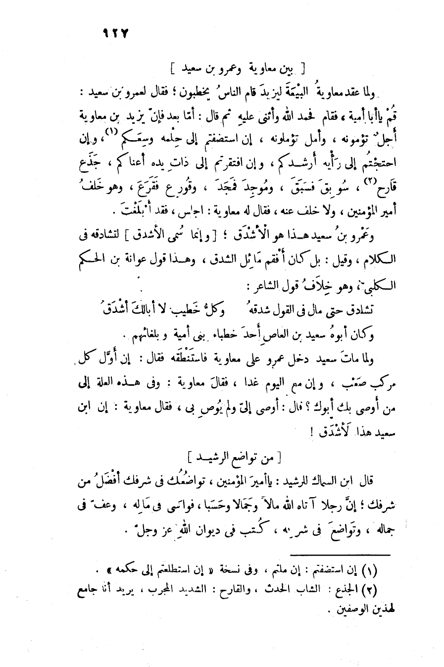 وعمرو بن سعيد هذا هو الأشدق؛ [وإنما سمى الأشدق] لتشادقه فى الكلام، وقيل: بل كان أفقم مائل الشدق، وهذا قول عوانة بن الحكم الكلبى، وهو خلاف قول الشاعر: