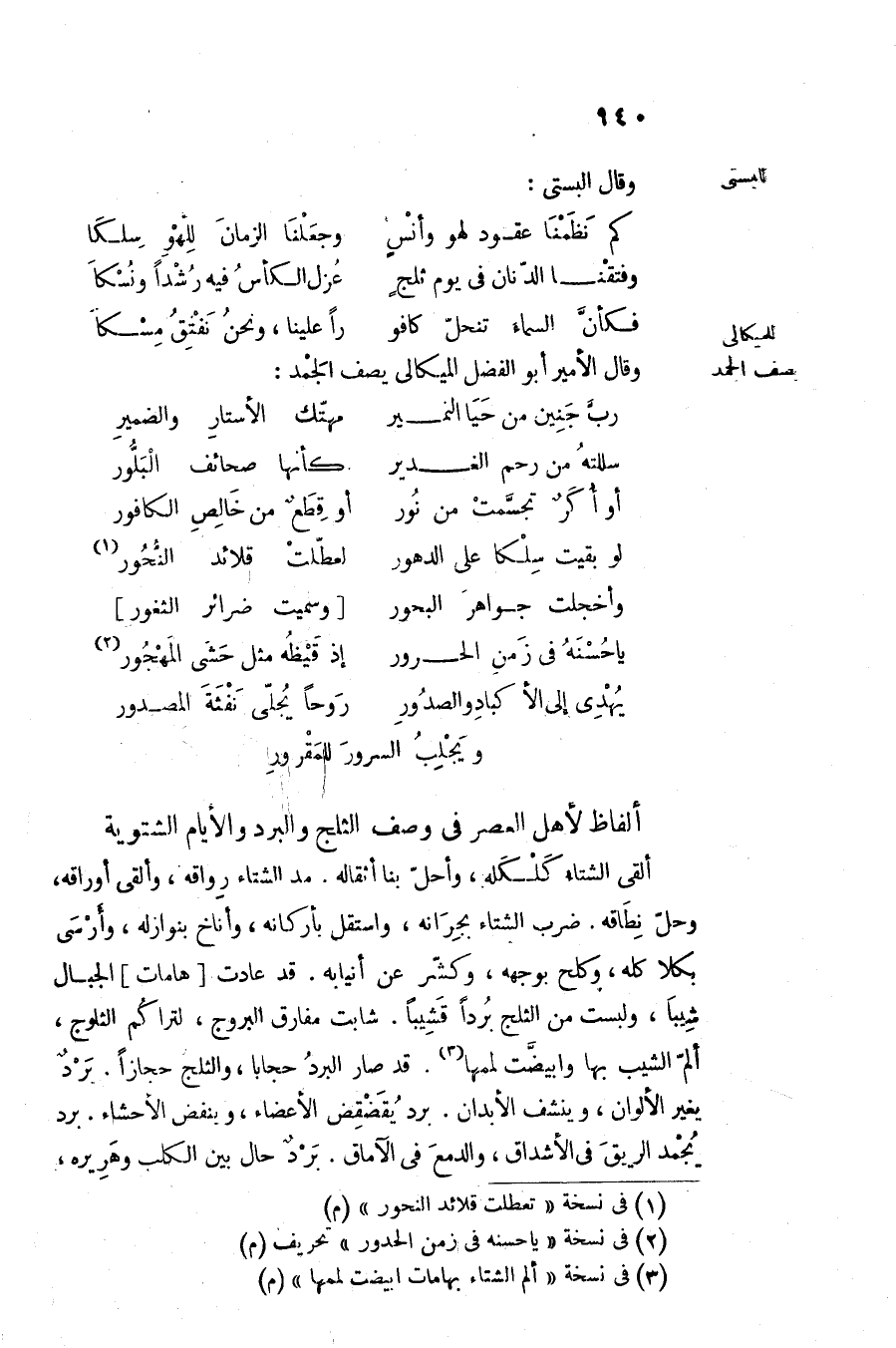 وقال الأمير أبو الفضل الميكالى يصف الجمد: